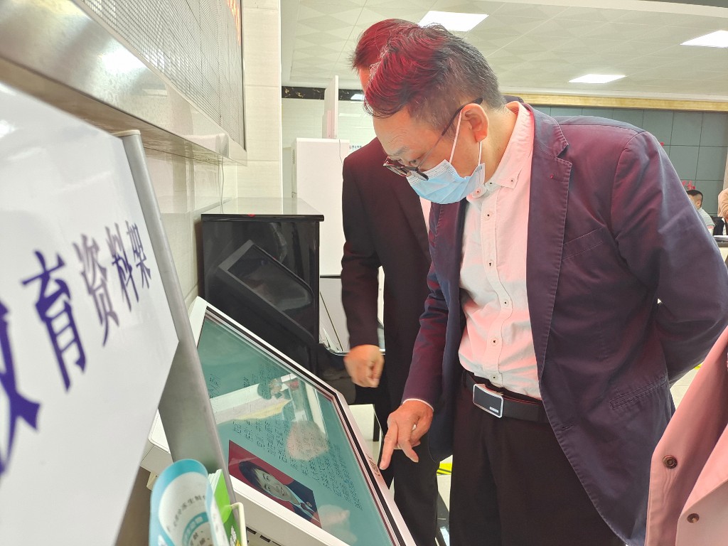 ▲刘红丹察看潇湘街道代表工作站建设情况