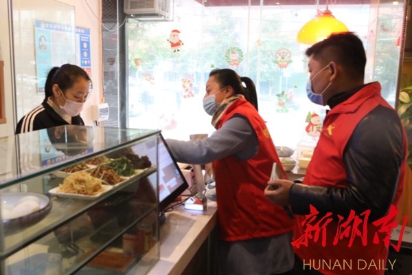 △“衡阳群众”志愿者走进餐饮门店,宣传防疫知识,助力实体经济复苏。陈毅摄