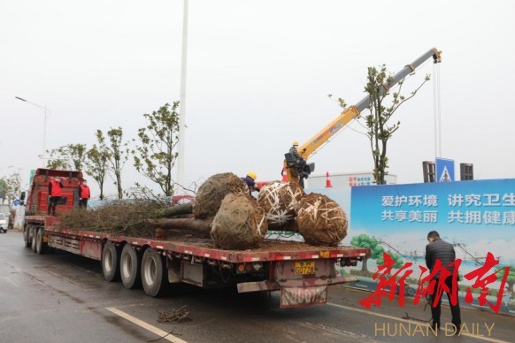 △湖南华侨城·来雁新城项目湘江风光带,工人们正在抓紧高标准植绿。陈毅摄