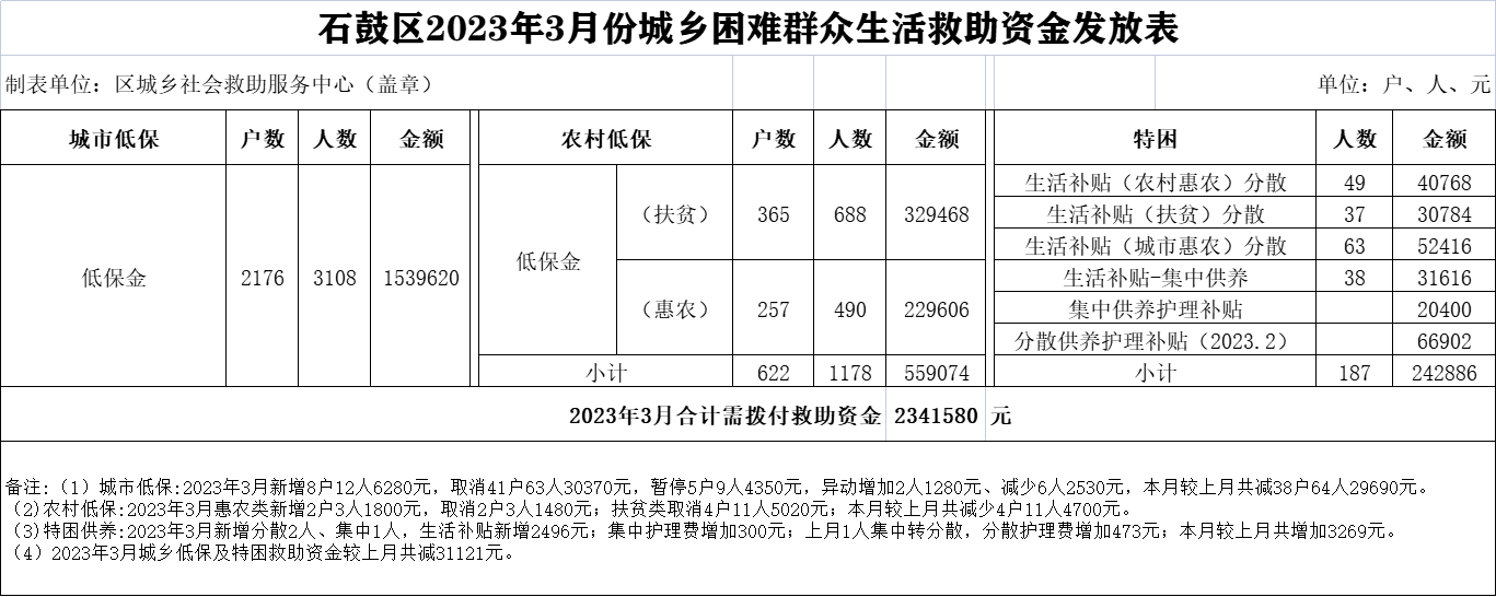 【区民政局】365bet盘口_正规的365网站平台_365账号限制登录不了2023年3月份城乡困难群众生活救助资金发放表