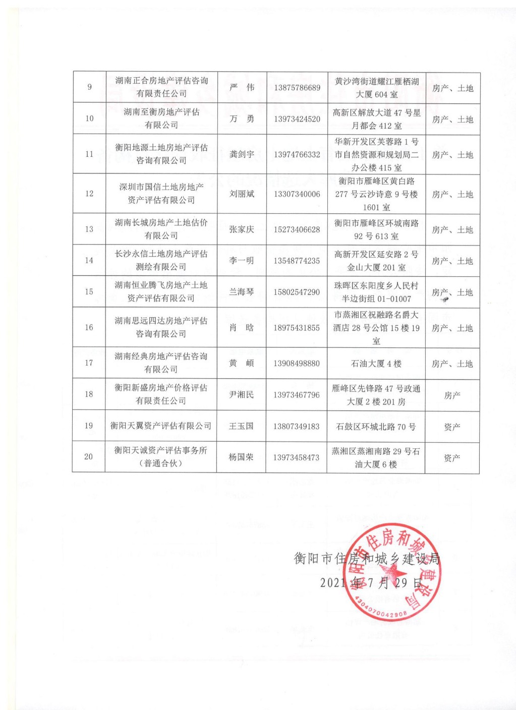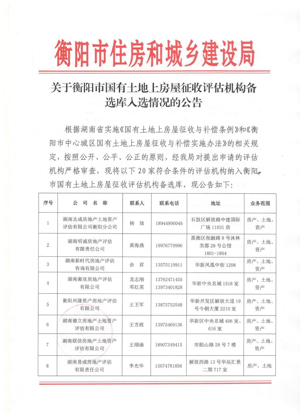 关于衡阳市国有土地上房屋征收评估机构备选库入选情况的公告