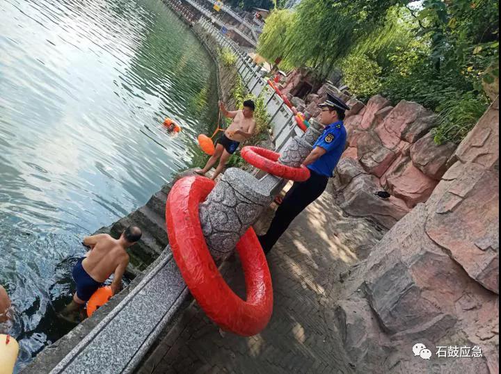 8月19日下午,潇湘街道人大联络工委主任李超带领石鼓社区工作人员对垂钓和游泳人员发放温馨提示。