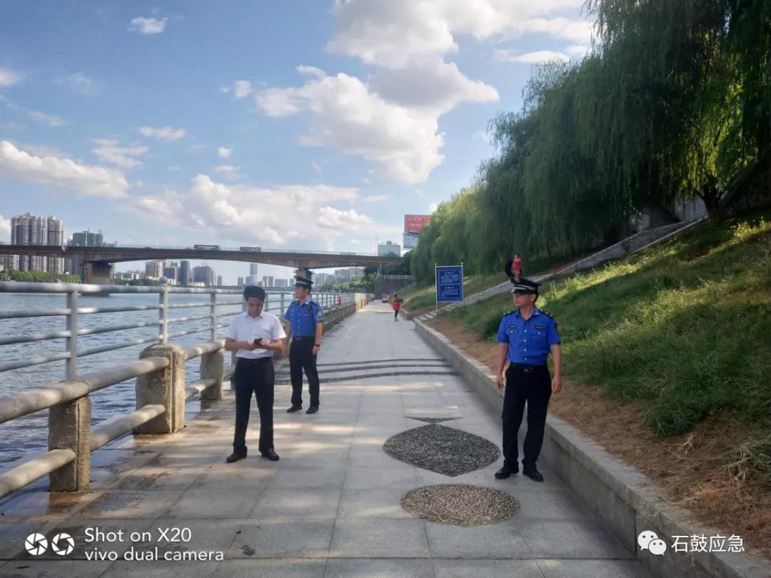 8月19日下午,潇湘街道党工委副书记陈红智和办事处副主任全昌艳在石鼓书院码头劝离游泳及垂钓人员。