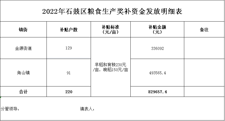 【农业农村局】2022年365bet盘口_正规的365网站平台_365账号限制登录不了粮食生产奖补资金发放明细表