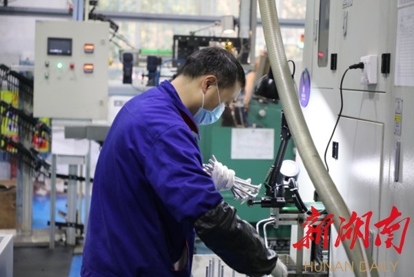 △湖南天雁机械有限责任公司的的生产车间内,工人们正在抢抓工期,确保订单如期交付。陈毅摄